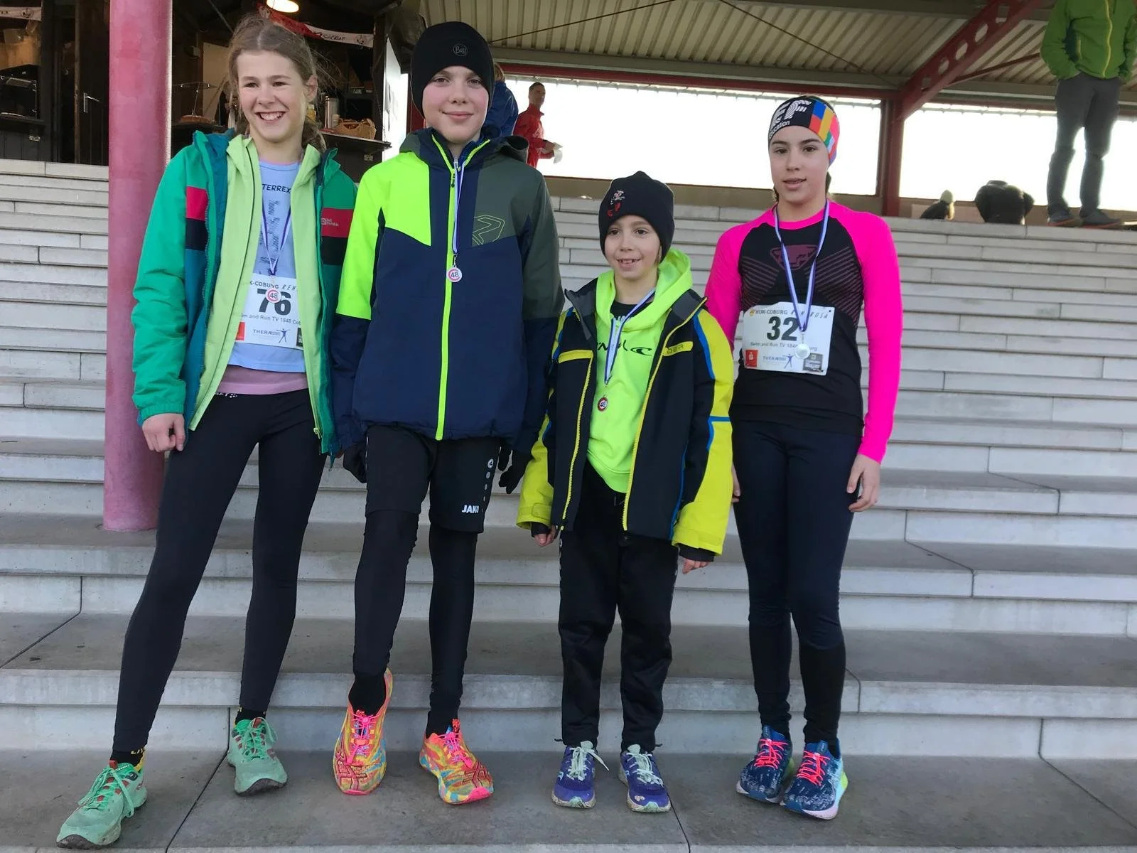 Alle happy im Ziel: Jana, Jakob, Enzo und Zoé (v.l.n.r.)