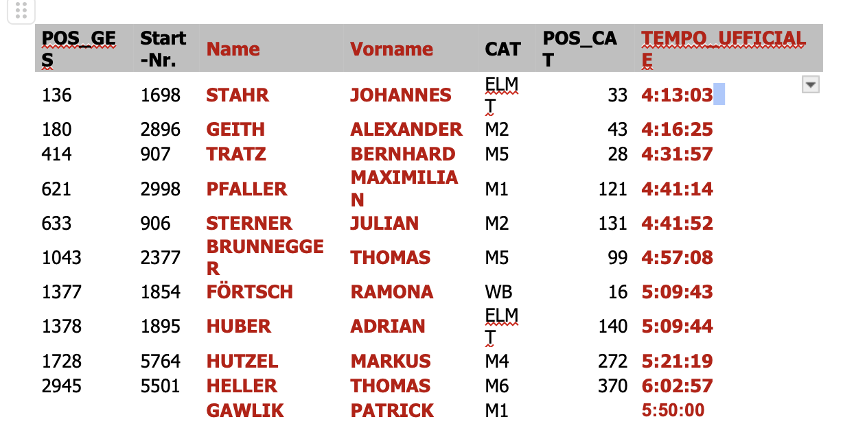 Größter Dank gilt an dieser Stelle Elena, die leider krankheitsbedingt nicht starten konnte, und Michi, die uns an der Strecke profiwürdig anfeuerten und eine erstklassige Verpflegung sicherstellten!