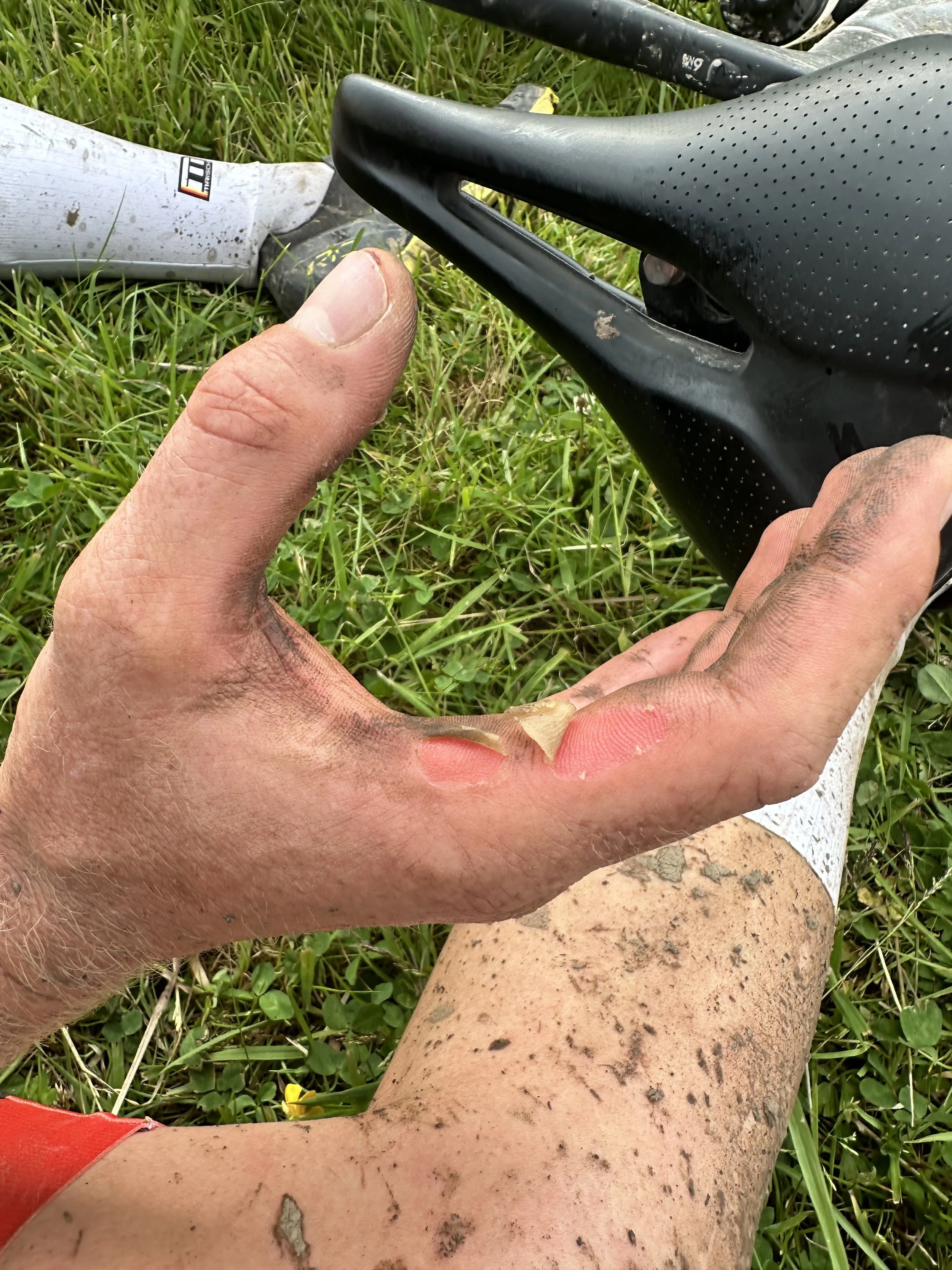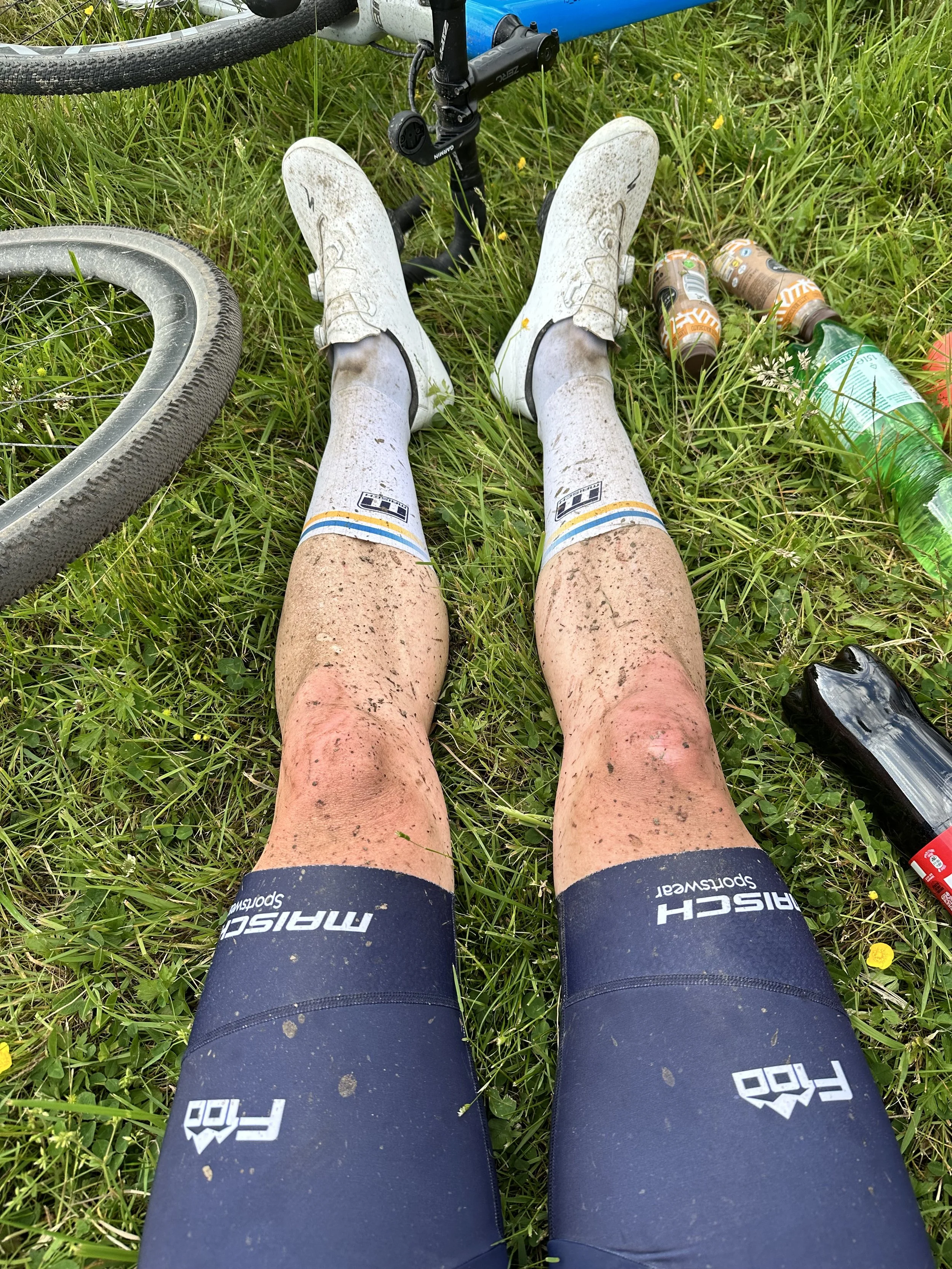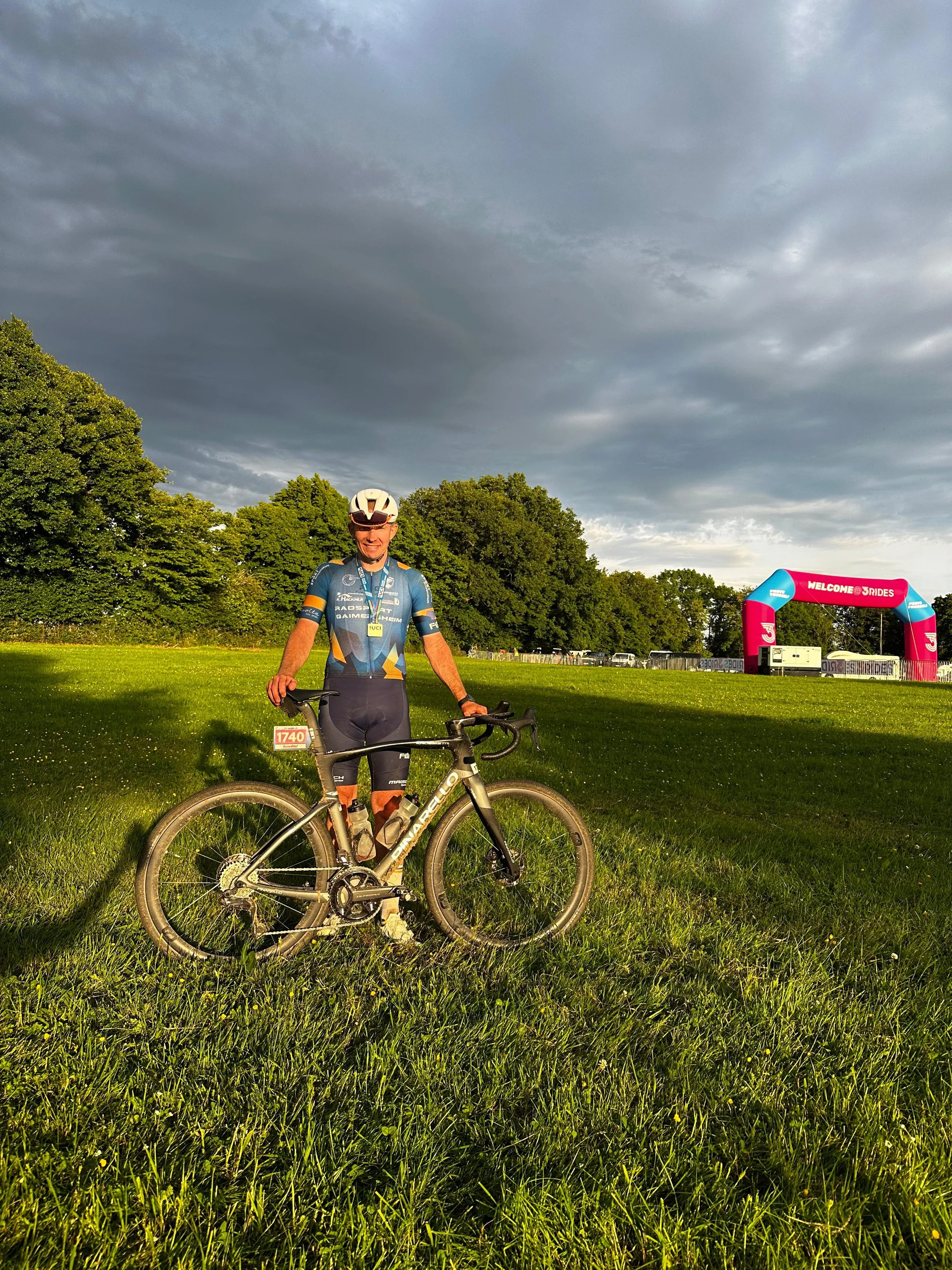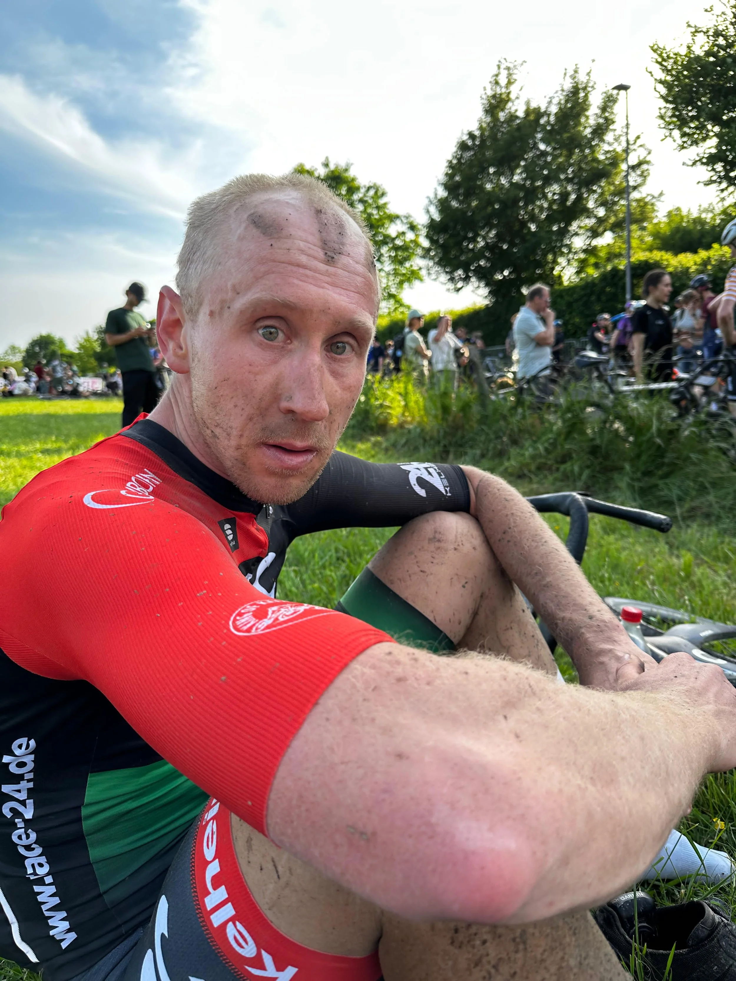 Ersteres war dann im Fall von Alex auch nötig denn auf den letzten 10km kam plötzlich ein Fahrer aus der selben AK von hinten und die Beiden rollten zwei weitere AK-Fahrer auf, d.h. es entbrannte nochmal ein Kampf um 4 Plätze. Die letzten 2km führten über eine Kuhweide, waren also sehr uneben und es war schwierig nach der Rennzeit noch genug Körperspannung und Druck aufzubauen um den Abschnitt flott zu absolvieren. An einem kurzen Wiesenanstieg konnte Alex sich von den Verfolgern absetzen und auf Platz 21 die Ziellinie überqueren was dann die Quali für die WM bedeutete. Matthias folgte gerade einmal 6:30min später, leider aber auf Platz 43 und somit knapp 4 Minuten an der UCI-Quali Medaille vorbei. Im Ziel wartete Holger auf die abgekämpften Sportler, denen die Belastung deutlich anzusehen war.