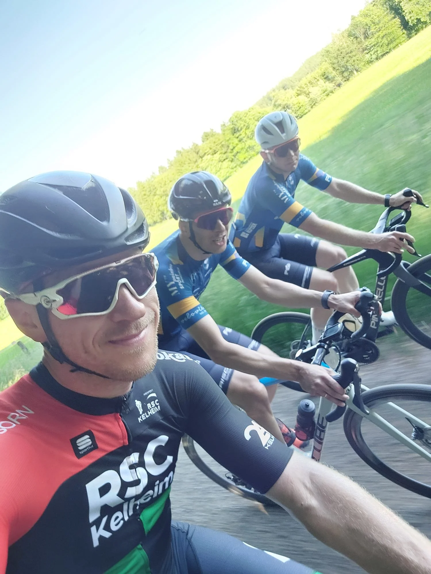 Zu Beginn der zweiten Runde lösten sich diverse Gruppen auf wundersame Weise in Wohlgefallen auf. Beim überqueren der Ziellinie für die zweite Runde lagen Alex und Matthias nach 1:45h Rennzeit lediglich knapp 30s auseinander was gleichzeitig 10 Plätze ausmachte. Lediglich Fahrer aus älteren Altersklassen konnte man einholen, durch den Geschwindigkeitsunterschied waren hier aber keine Synergien und kraftsparende Grüppchen zu bilden. Erst als wir von hinten von den Elite Fahrern eingeholt wurden, nahm das Rennen wieder deutlich Fahrt auf. Leider kostete aber auch diese Fahrweise wieder viel Energie und der Akku leerte sich Stück für Stück Richtung Reserve. Spätestens ab ca. 30km vor Ziel war es dann wirklich ein harter Kampf. Es war stets ein Abwägen zwischen “einen letzten Antritt im Tank lassen” für eine bessere Platzierung in der Zielanfahrt und einem stetig hohen Tempo um nicht von weiteren Verfolgern eingeholt zu werden.