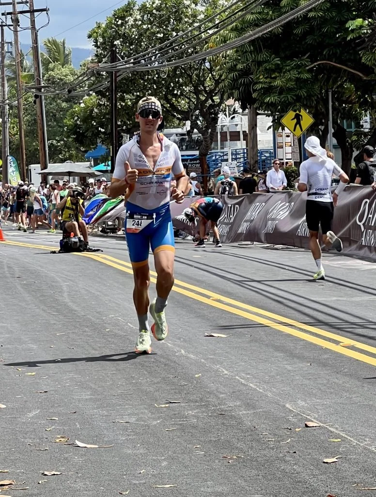 So kann’s weitergehen, denn auch die ersten Schritte beim Laufen fühlten sich sehr gut an. Nach der langen Fahrt durch die Lava-Landschaft mit nur vereinzelten Zuschauern durfte man jetzt am Ali´i Drive mit tausenden Zuschauern und bester Stimmung laufen. Mein Pacing passte und ich war auf 3h-Marathonkurs. Nach 10km nahm ich aber aufgrund der Hitze einen Gang raus und versuchte mit Eis und Wasser an jeder Verpflegungsstelle so gut es ging zu kühlen. Dann musste man die Palani Road wieder hoch, bevor es auf den Highway Richtung Energie-Lab zum zweiten Wendepunkt der Laufstrecke ging. Das war definitiv der schwierigste Teil der Strecke: nur vereinzelt Zuschauer, windig und sehr heiß aufgrund des aufgeheizten Asphalts und der Lavasteine neben der Straße. Ich versuchte mein Tempo noch so hoch wie möglich zu halten und nicht zu überhitzen, mehr war leider nicht drin unter diesen Bedingungen. Man kämpfte sich von einer Verpflegungsstelle zur nächsten, durchs Energie-Lab und zurück, und danach wieder den ewig langen Abschnitt am Highway zurück. Bis man nach 40km wieder in Kona war und mit dem Support der Zuschauer die Palani Road runter lief. Da wurde man wieder aus der Trance geholt und die letzten Meter am Ali´i Drive auf der Zielgerade waren einfach nur zum Genießen. Glücklich und zufrieden bin ich nach 9:05h und Platz 25 in der AK30-34 im Ziel angekommen.