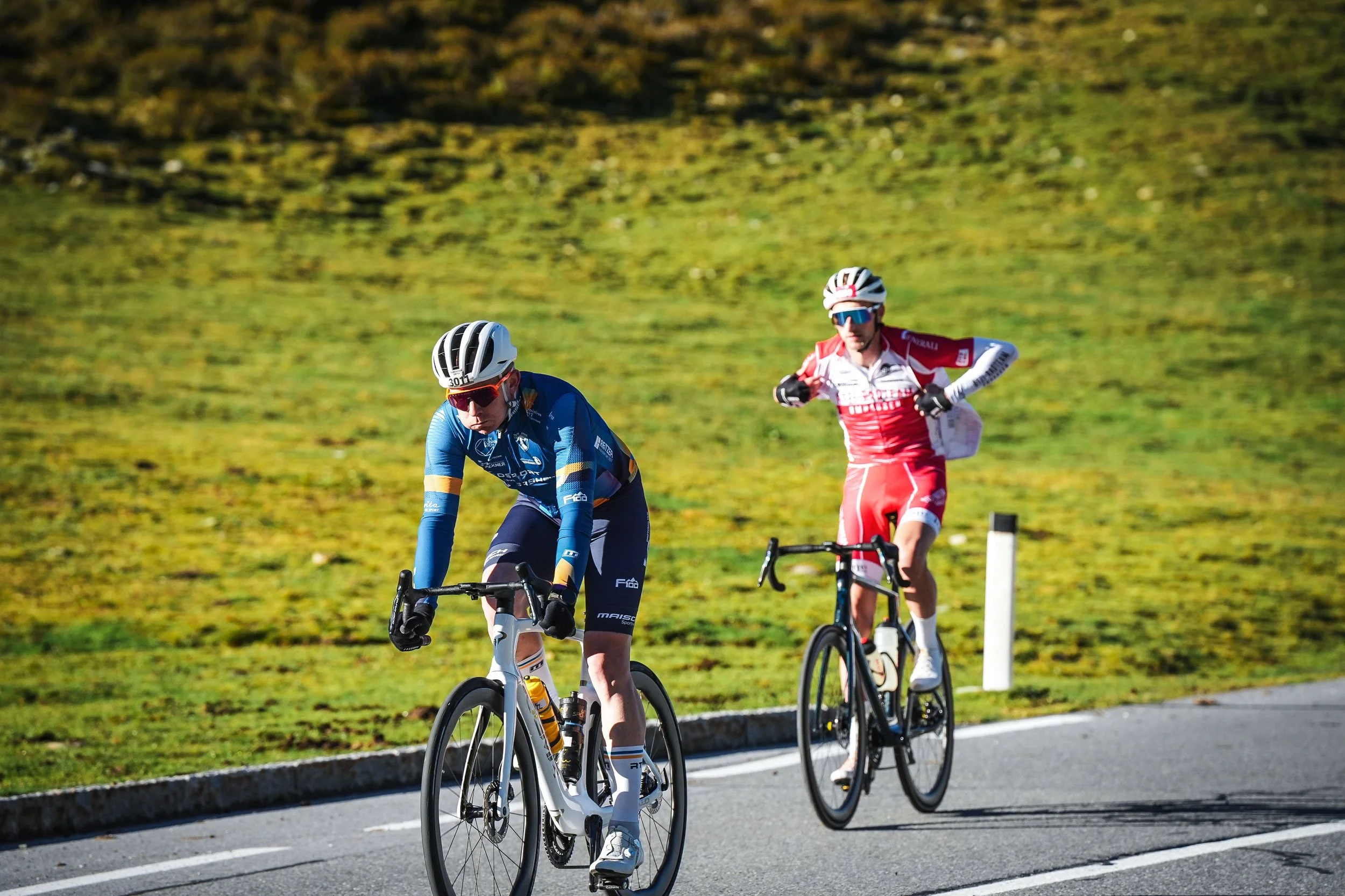 Pünktlich um 6:30 Uhr setzte sich das riesige Fahrerfeld in Bewegung. Schon kurz darauf kämpfte sich Alex zu mir nach vorne. Die Abfahrt nach Oetz war für mich wie immer ein Nervenspiel, doch dort angekommen wusste ich: Jetzt beginnt das Rennen erst richtig – und ja, ich hatte Lust, die Berge hochzufliegen.