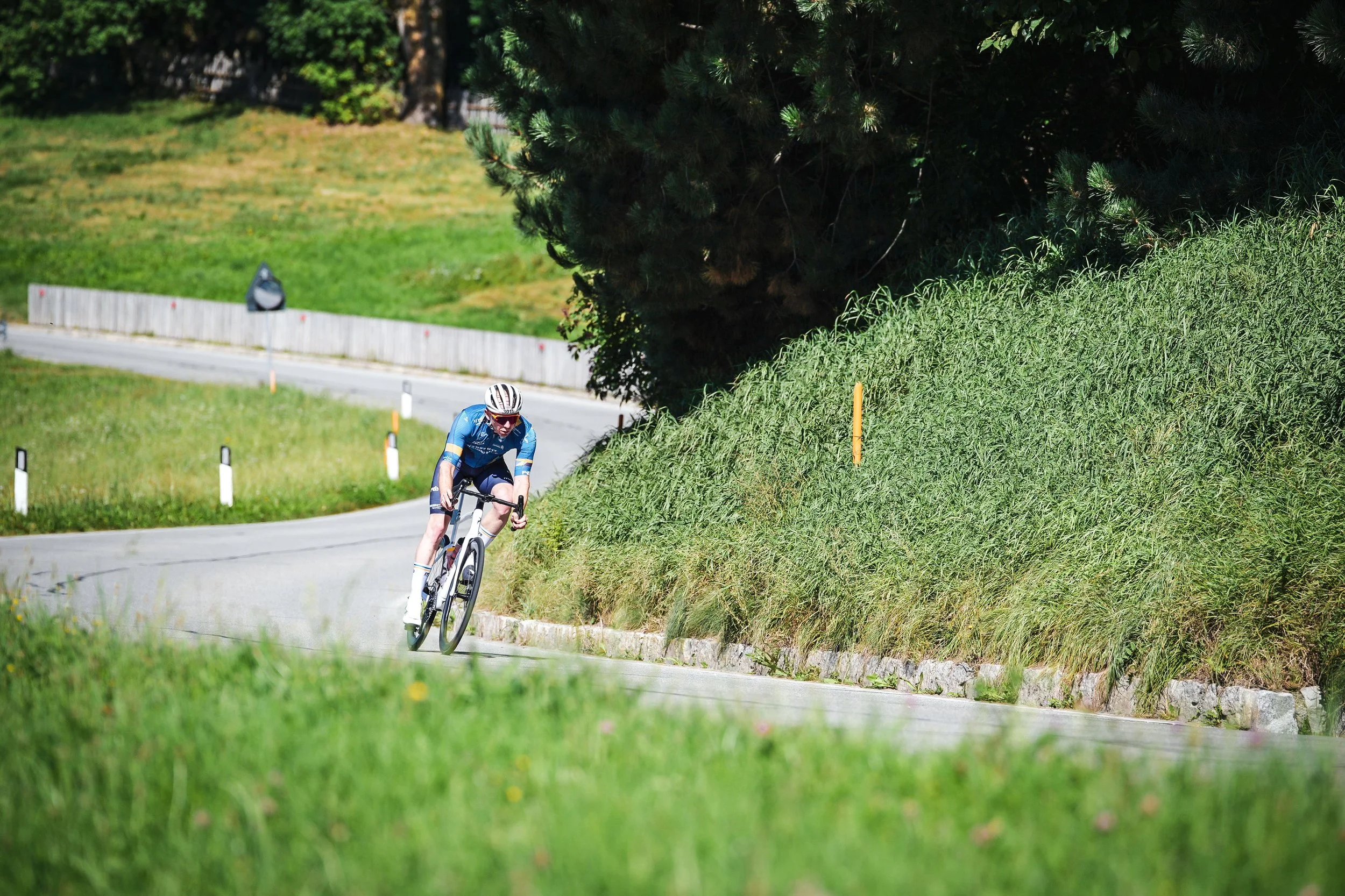 Der Schlussanstieg hat seinen Ruf nicht umsonst: Mit 1.700 Höhenmetern und langen Rampen bringt er jeden Fahrer an die Grenze. Ich konzentrierte mich nur noch auf das Treten. Im Kopf lief in Dauerschleife die Nachricht meines Bruders vom Vorabend: „Einfach nur strampeln.“ Kehre um Kehre kämpfte ich mich nach oben. Gefühlt kroch ich, tatsächlich überholte ich aber noch etliche Fahrer. Zum ersten Mal kam mir der Gedanke: Wie cool wäre dieser zweite Platz?