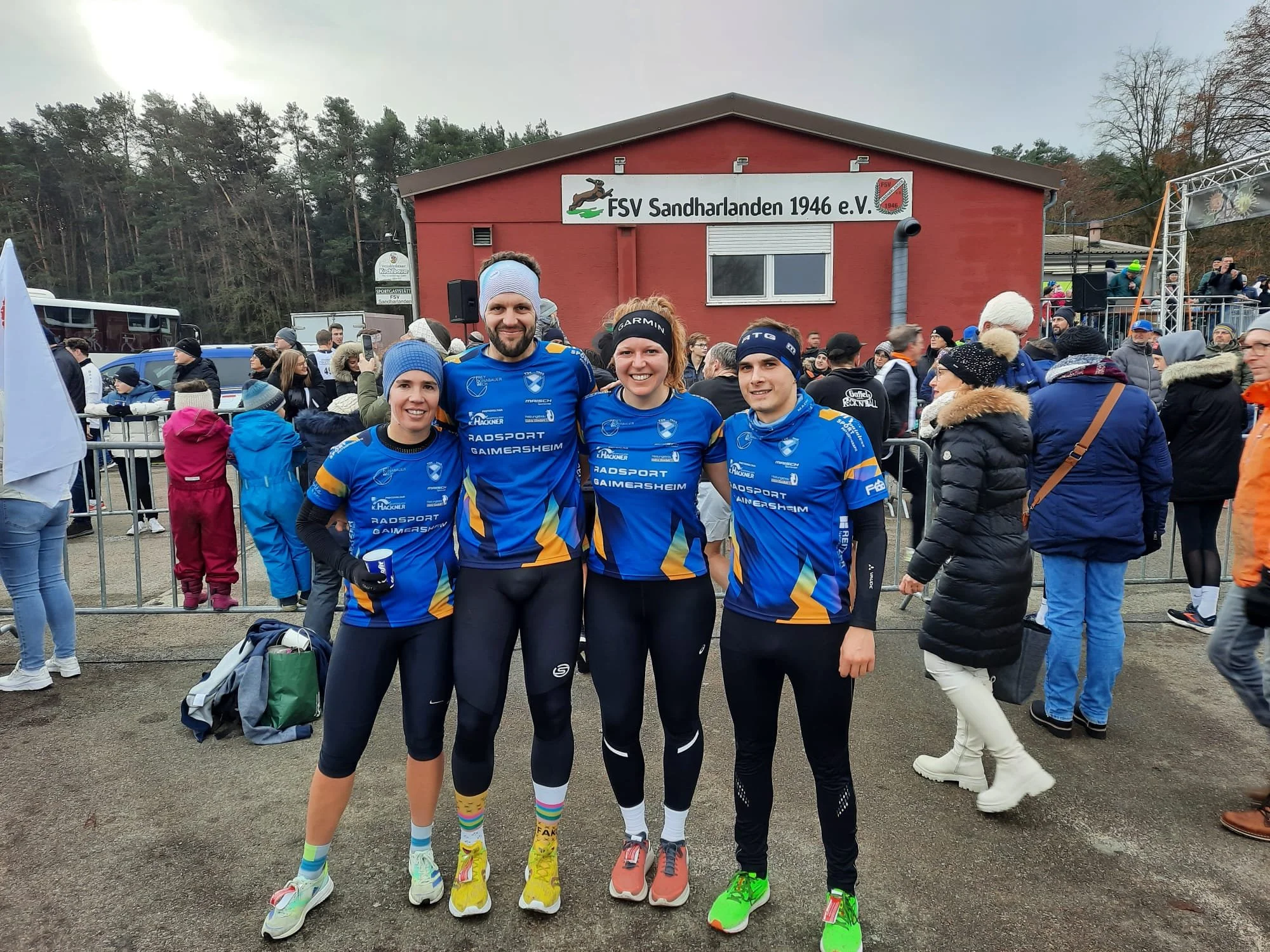 Eva, Basti, Biggy und Jannik beim Silvesterlauf in Sandharlanden