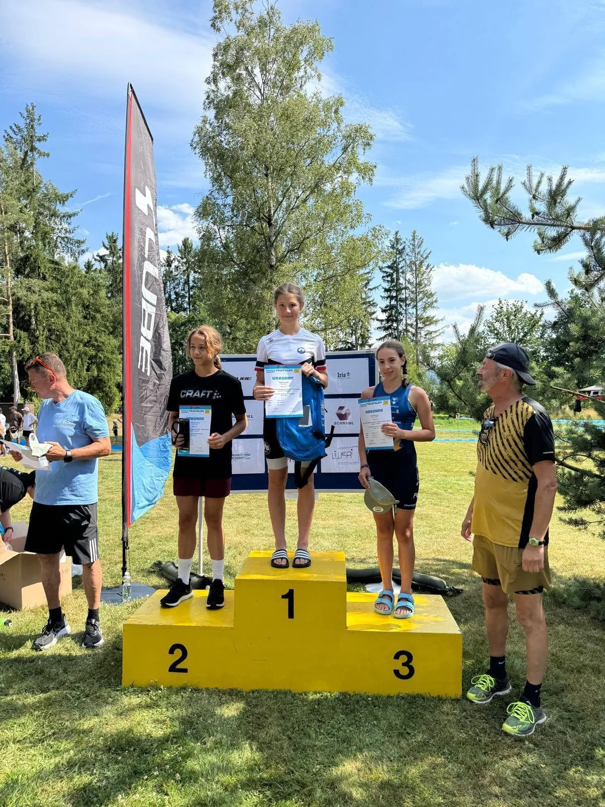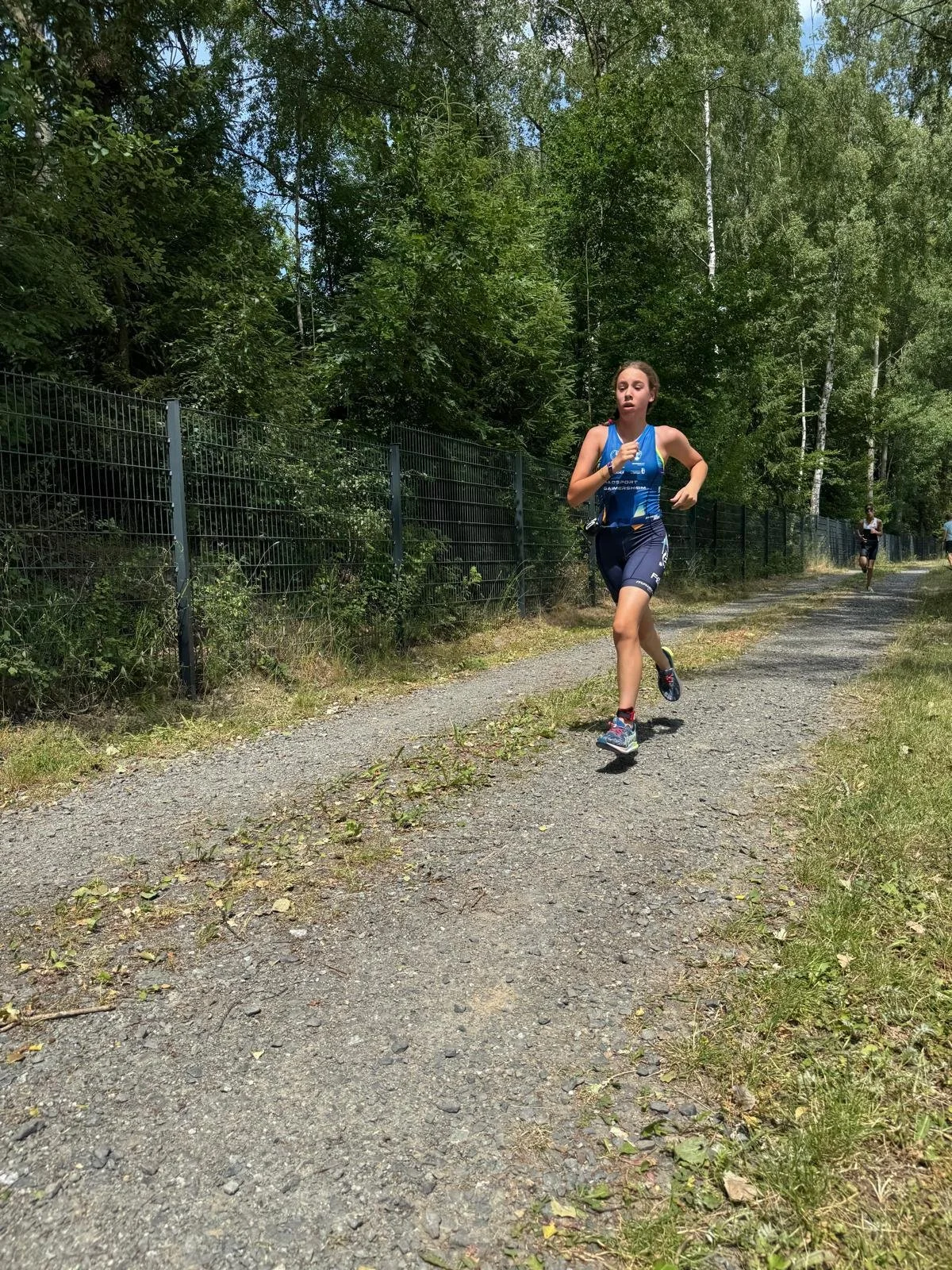 Zoé konnte sich beim Radfahren einen Vorsprung erarbeiten und absolvierte anschließend einen starken Lauf. Auch Enzo zeigte erneut vollen Einsatz auf dem Rad, überholte mehrere Konkurrenten und kam fast zeitgleich mit einem Mitstreiter als Erster zurück. Beim abschließenden Lauf um den See musste er das Tempo etwas drosseln, sicherte sich aber dennoch einen hervorragenden zweiten Platz – eine beachtliche Leistung, zumal er der Jüngste in seiner Altersklasse war.